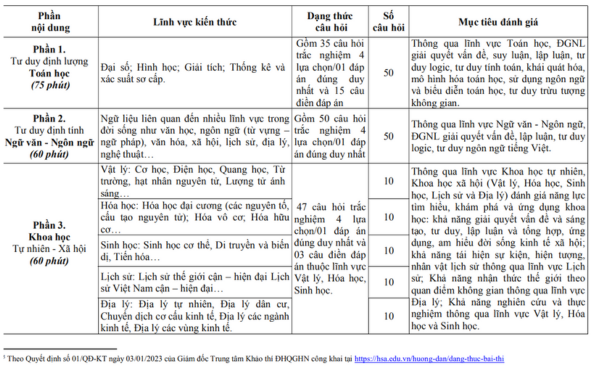 2. Cấu trúc bài thi Đánh giá Năng lực ĐHQG Hà Nội